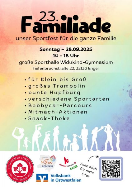 Am 28.09.2025 um 14-18 Uhr wird in den Sporthallen des Widukindgymnasiums wieder gefeiert: Wir feiern Bewegung, Sport, Spiel und Spaß, unsere Vielfalt und unsere Gemeinschaft.